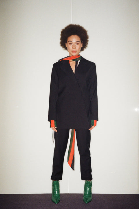 Slim wool trousers. The fabric is absolutely stunning — a beautiful, luxurious blend.