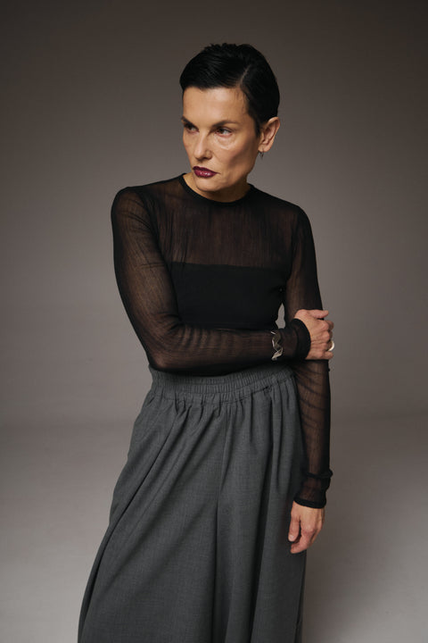 Створений з облягаючим, скульптурним кроєм, лонгслів рухається разом із вами — ідеально самостійно або як вишуканий базовий шар під піджаки чи верхній одяг. Мінімалістичний силует і приємна на дотик текстура роблять його універсальним елементом для повсякденного стильного носіння.